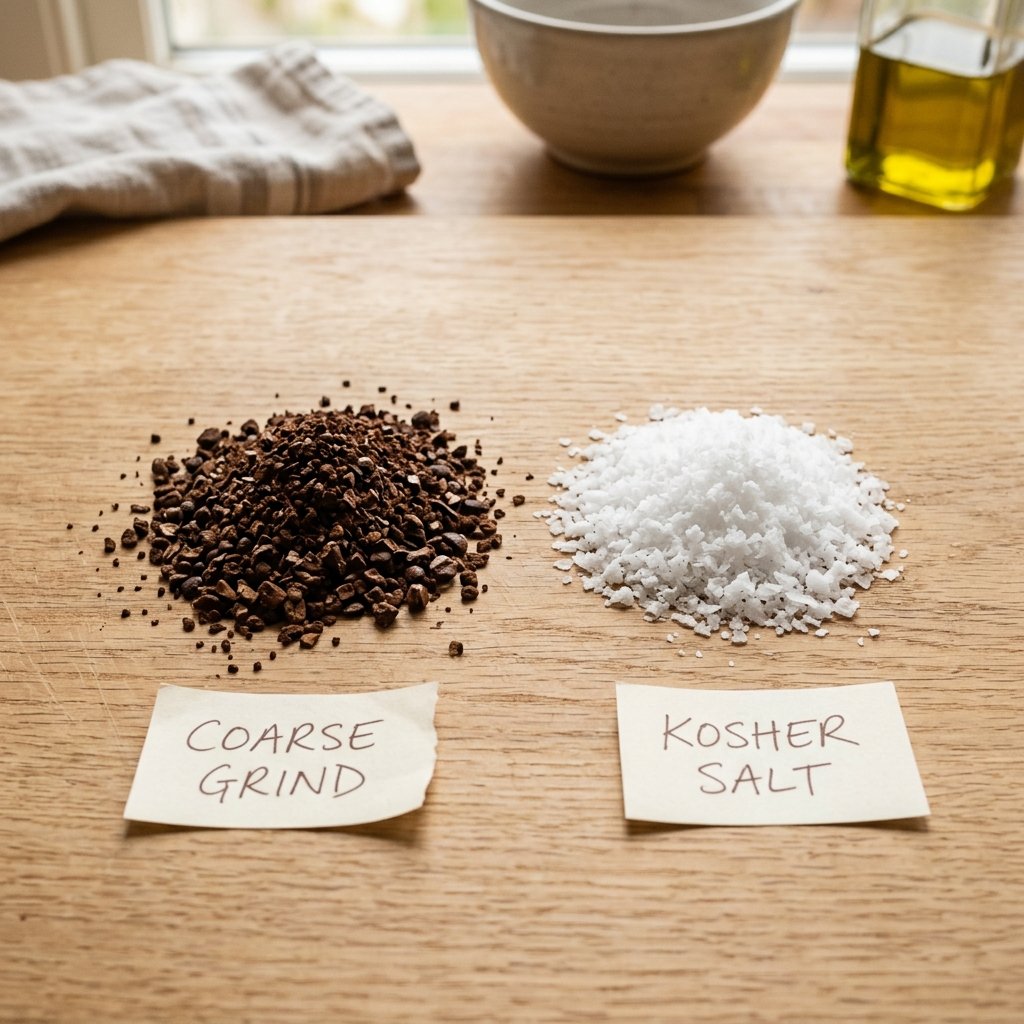 - Use a coarse grind that looks like kosher salt. This is the single most important variable.